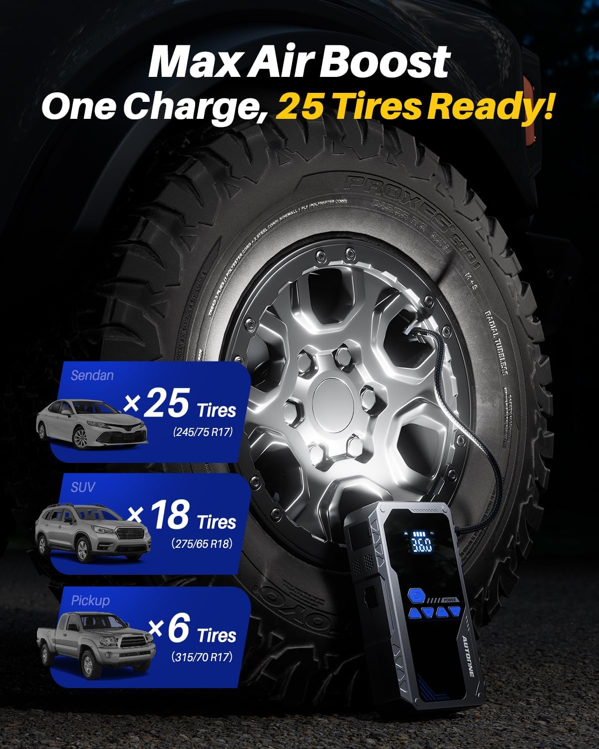 AUTOONE 8000A Jump Starter with Air Compressor (All Gas/12L Diesel), 150PSI Car Jumper Starter Portable, Jump Box Tire Inflator with LED Flashlight, LCD Display, Storage Case