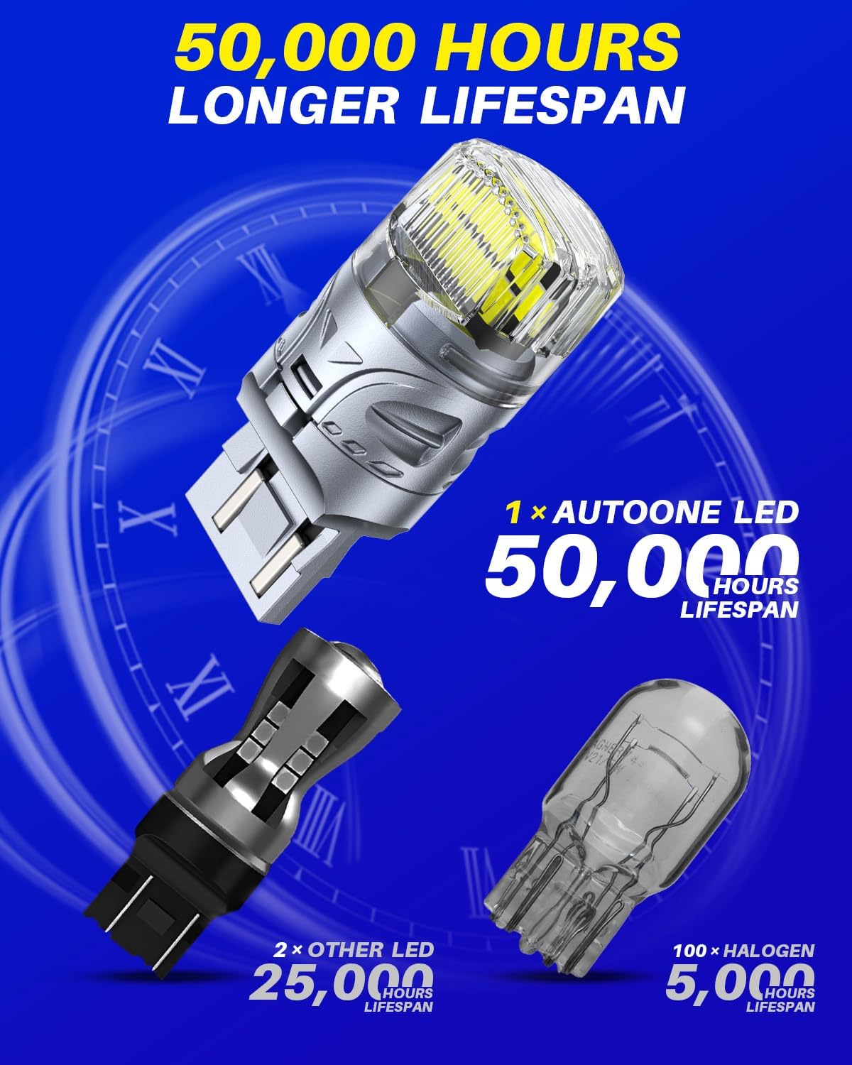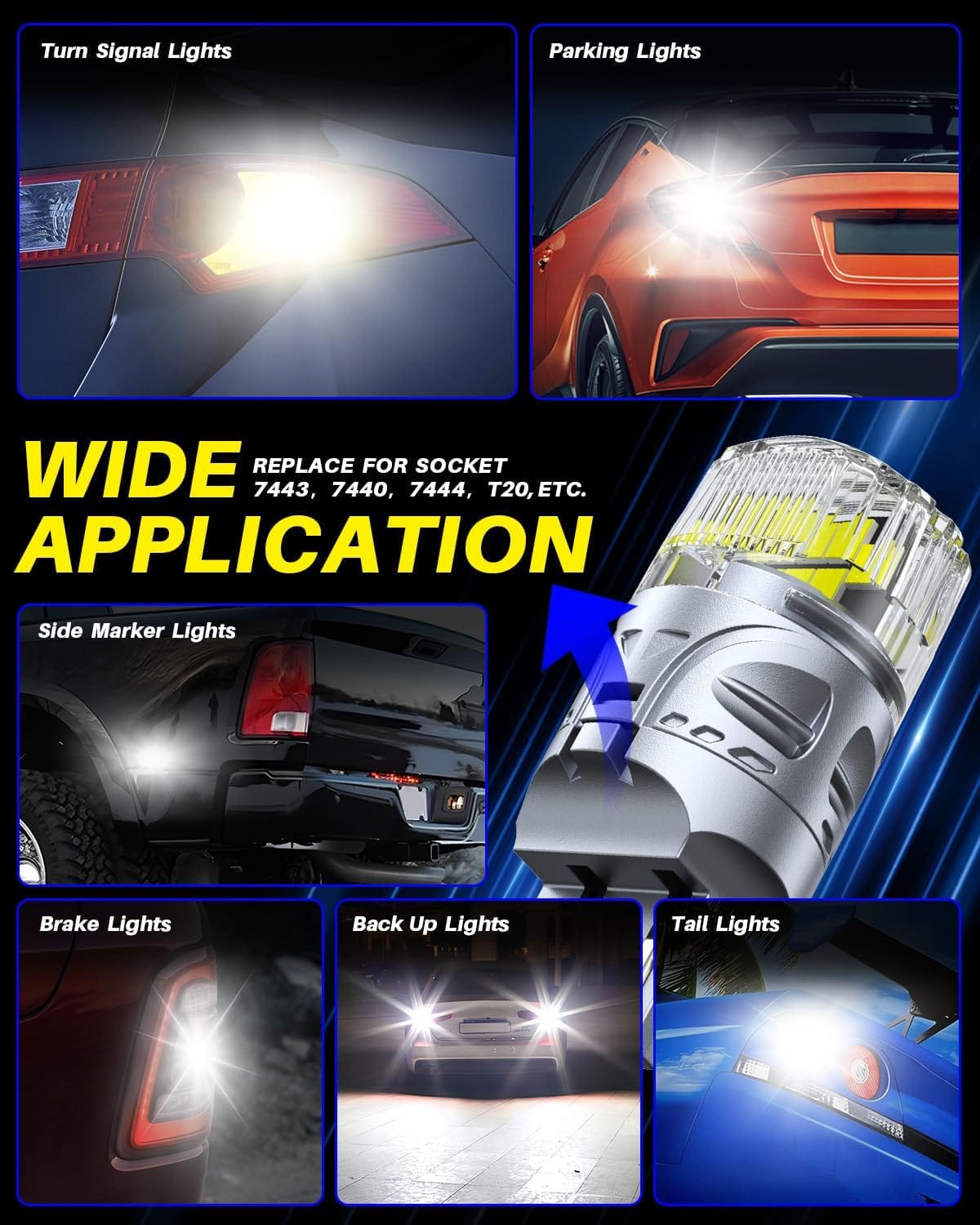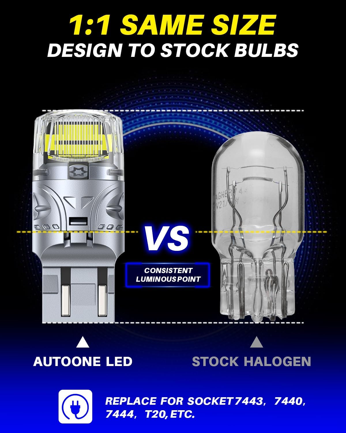 AUTOONE Upgraded 7443 7440 LED Bulb White for Backup Lights, 500% Super Bright & 360° High Luminous, T20 7441 LED Replacement with Projector for Reverse Tail Brake DRL Signal Parking Lights, Pack of 2