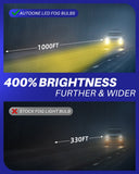 - 【400% Brightness & Visibility 1000 Feets】The AUTOONE 9145 LED Fog Bulbs are a powerhouse of illumination, boasting an incredible 400% increase in brightness compared to standard bulbs. They cast a broad, expansive beam that not only enhances visibility but also extends an impressive distance of 1,000 feet, ensuring that every journey is lit with unmatched clarity and reach.